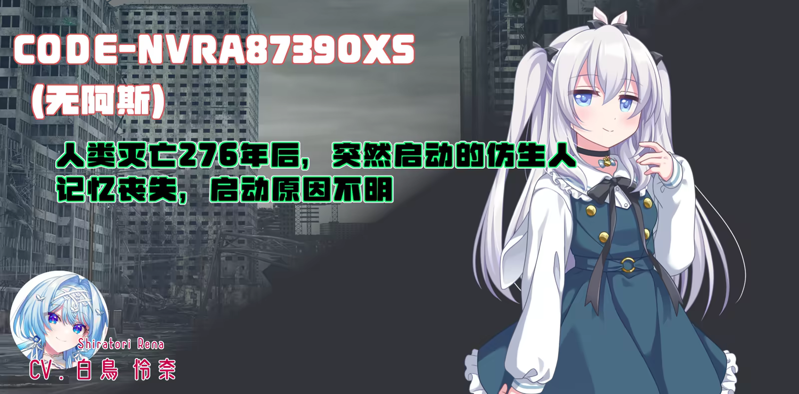 人类灭亡276年后突然启动的仿生人无阿斯不知为何失去了记忆。 与内置的支援AI玖布一起,她开始探索失去的记忆、自己启动的谜团和人类灭亡的谜团。 在与突然出现的神秘存在和袭来的仿生人战斗的同时,她将发现的真相是——?