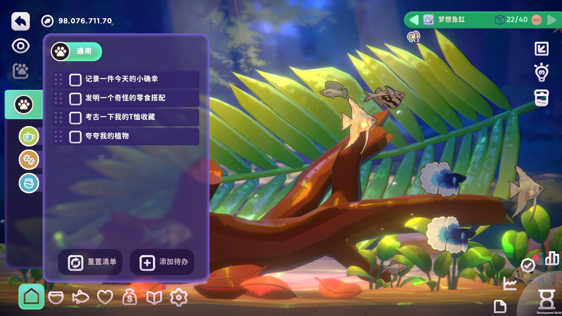 多种风格的治愈音乐专辑及减压白噪音选择,搭配鱼儿们的悠然游动和造景鱼缸内的水波流转,来一起进入宁静而舒适的专注时光~集中精神轻松进入心流状态,更好的达成目标,赚取鱼币!